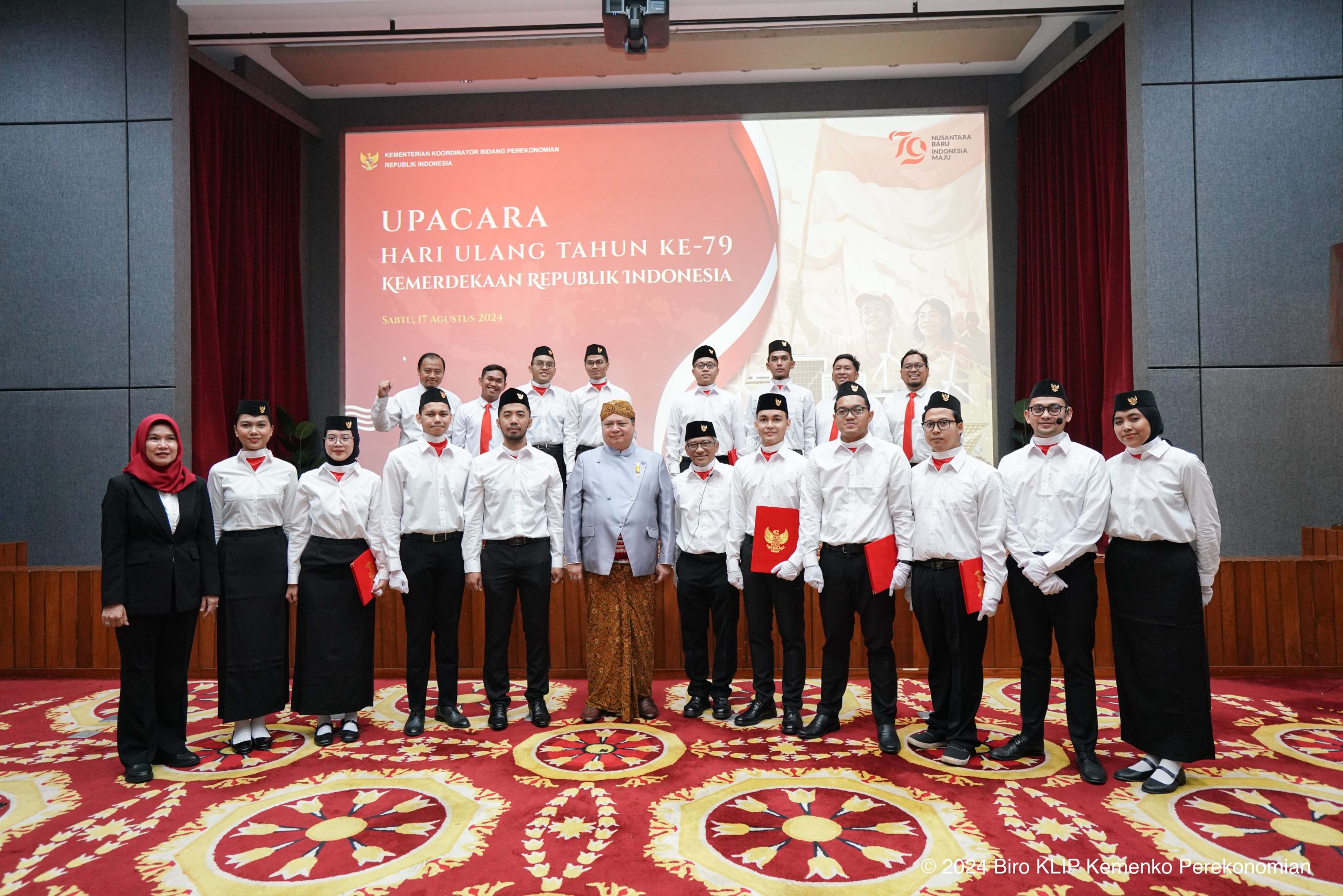 Informasi & Berita SDM Upacara Hari Ulang Tahun ke-79 Kemerdekaan Republik Indonesia Previous Next Kementerian Koordinator Bidang Perekonomian menyelenggarakan Upacara HUT Kemerdekaan ke-79 Republik Indonesia, Sabtu (17/08). Upacara bertempat di Graha Sawala dan dipimpin oleh Menko Perekonomian, Airlangga Hartarto selaku Inspektur Upacara dan dihadiri oleh Pejabat Pimpinan Tinggi Madya, Pejabat Pimpinan Tinggi Pertama, Perwakilan pegawai … Baca Selengkapnya